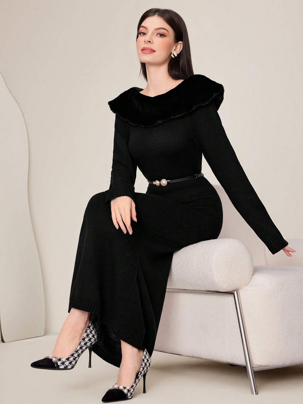 Women's Furry Patchwork Sweater Dress Fall Cloth For Women