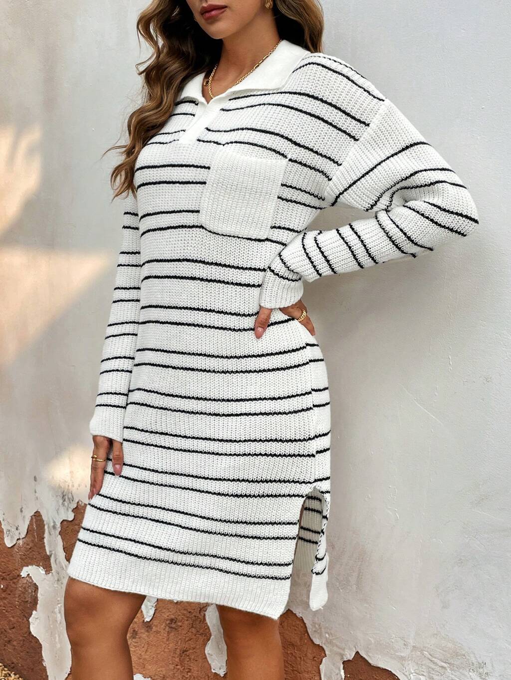 Striped Pattern Sweater Dress