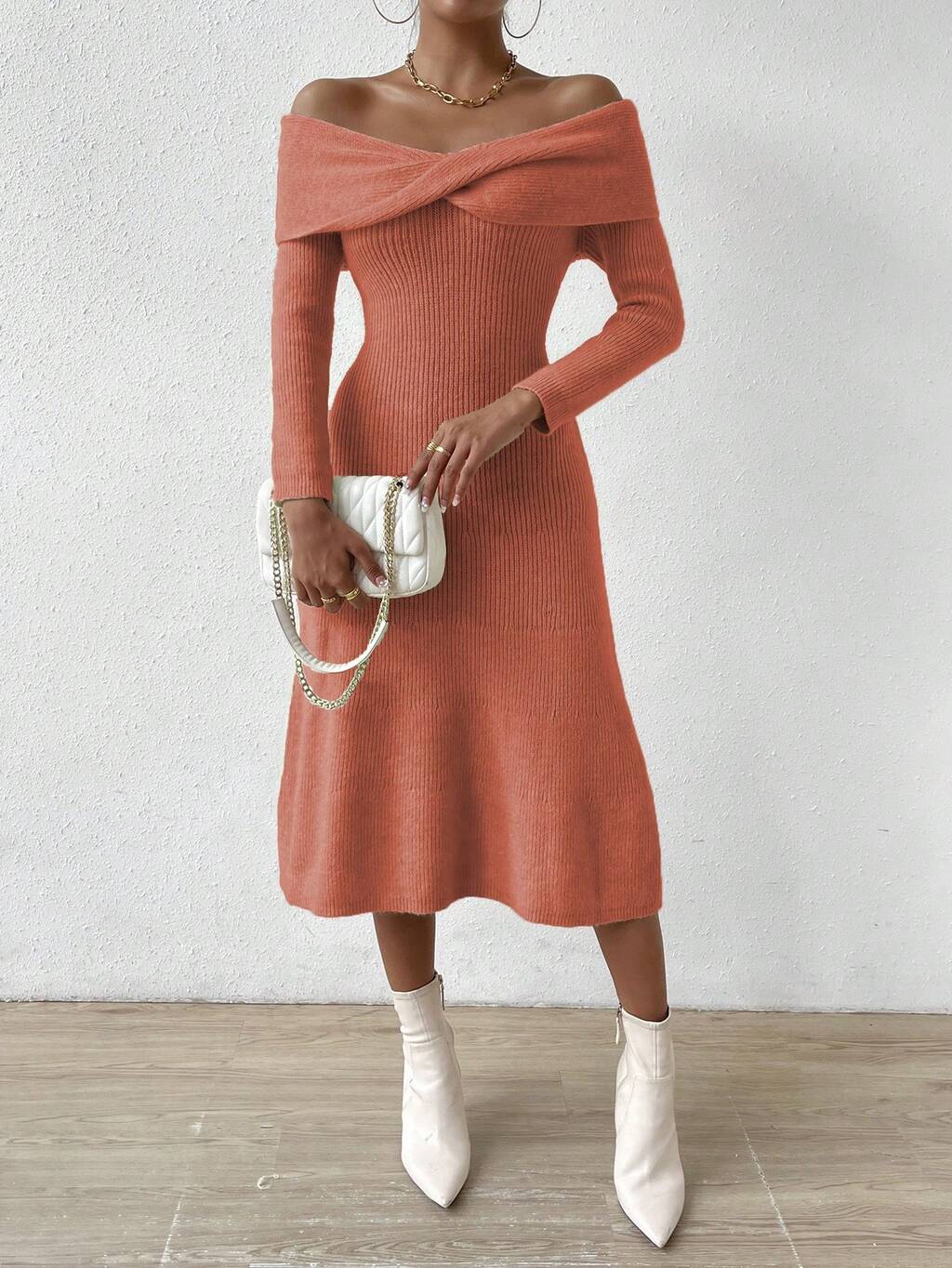 Off Shoulder Foldover Sweater Dress Fall Cloth For Women