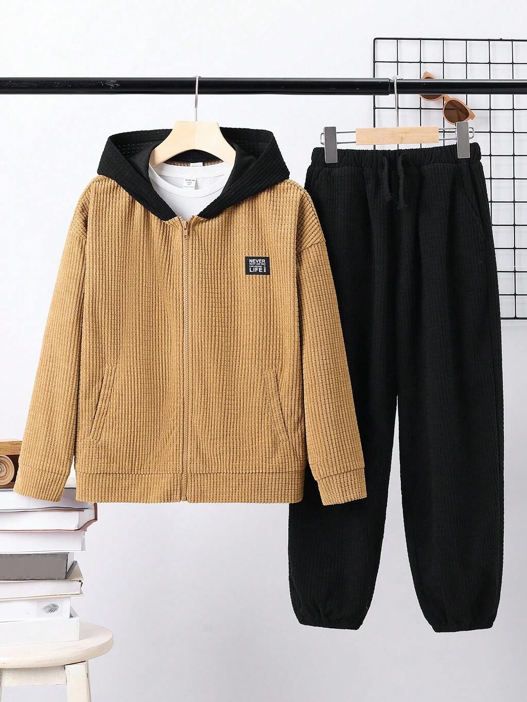 Boys' Color Block Zipper Front Hoodie And Sweatpants Set