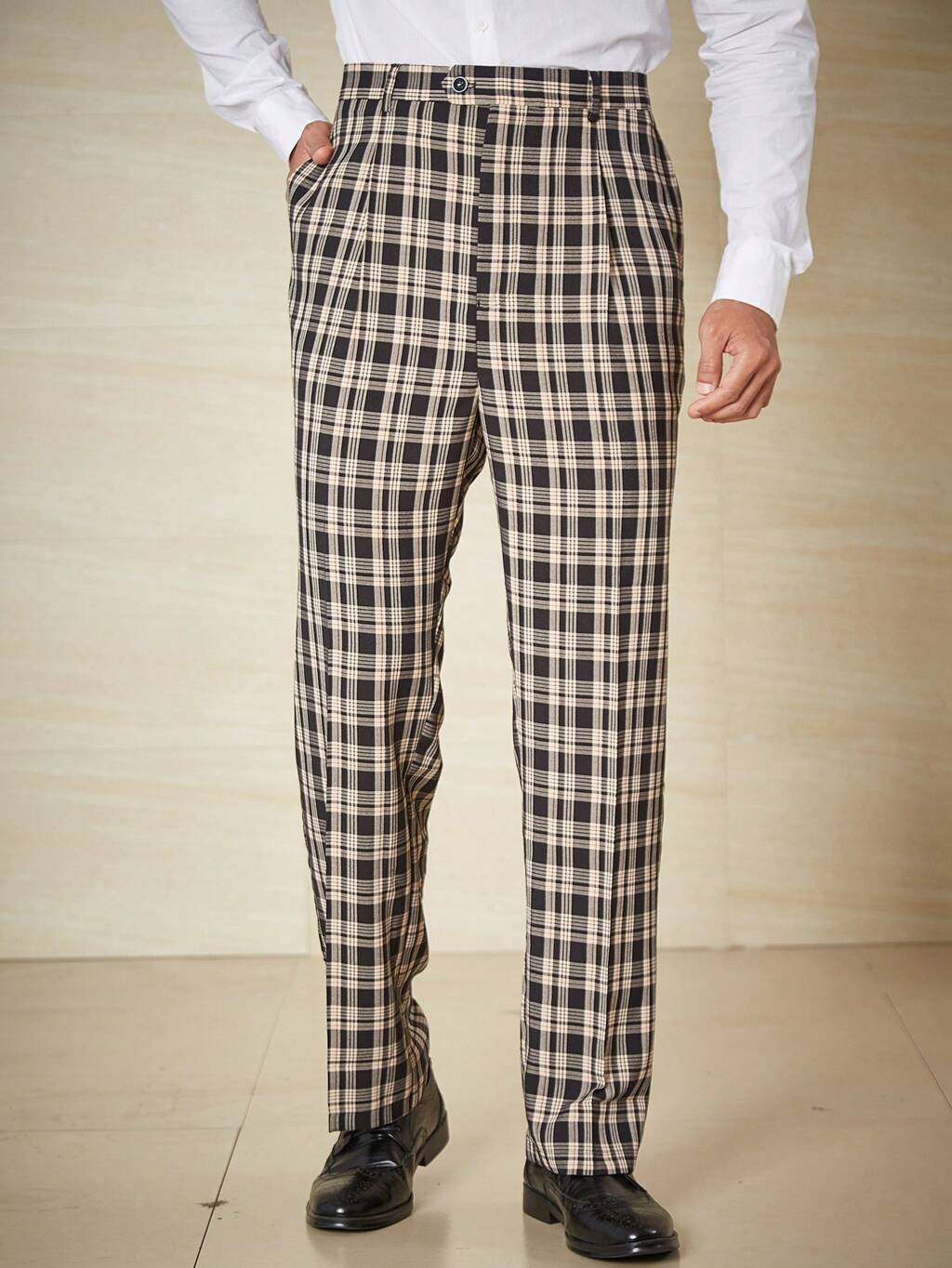 Men Plus Plaid Slant Pocket Suit Pants