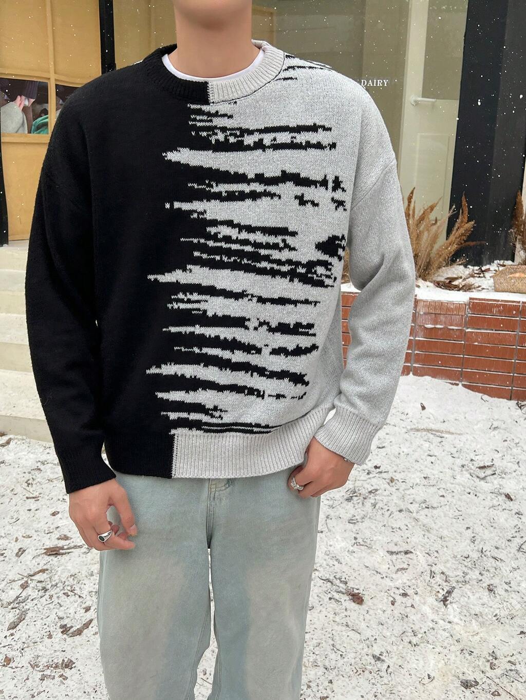 Men's Oversized Colorblock Sweater With Drop Shoulder