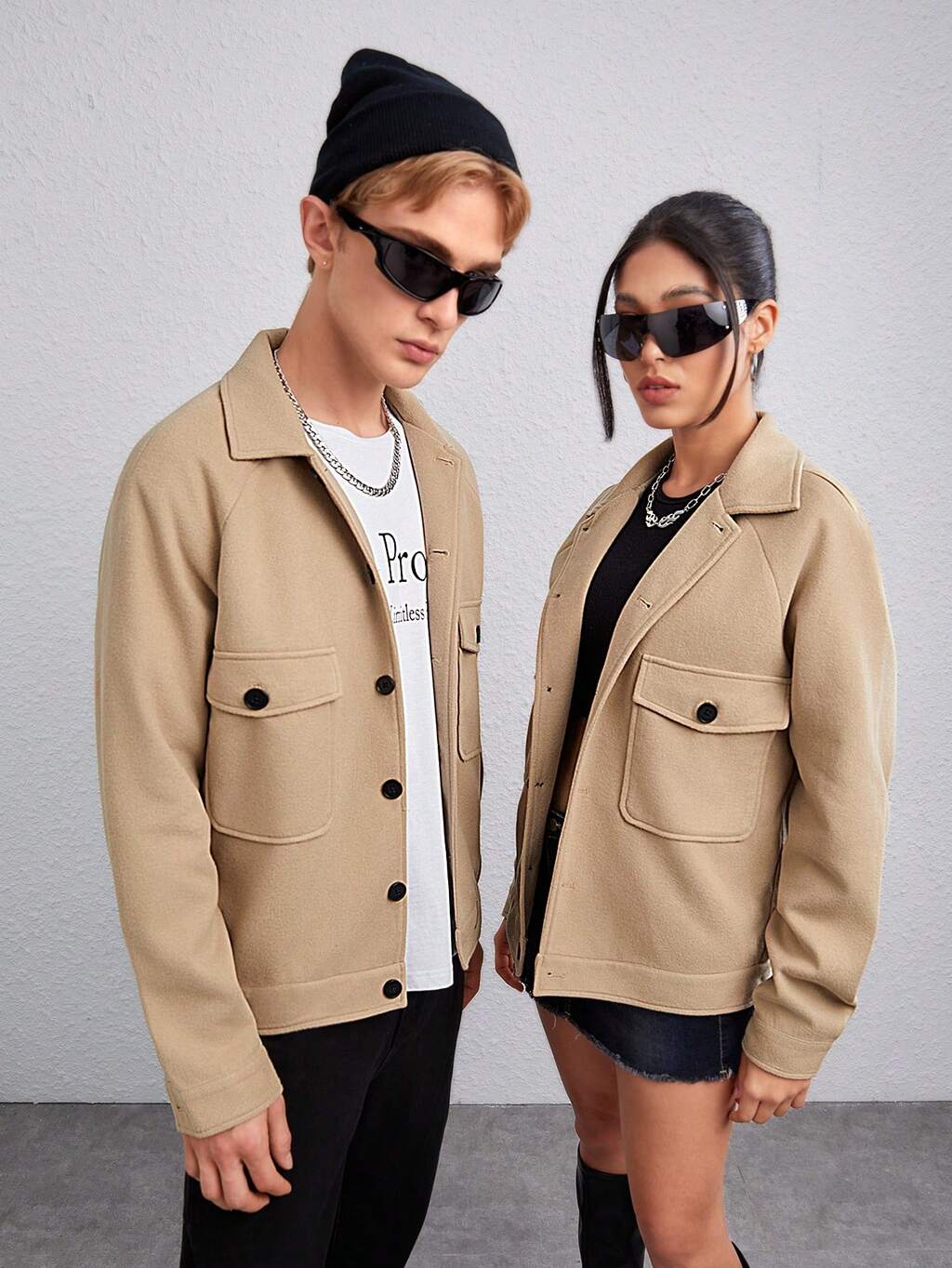 1pc Loose Fit Men's Flap Pocket Raglan Sleeve Overcoat, For Fall Winter