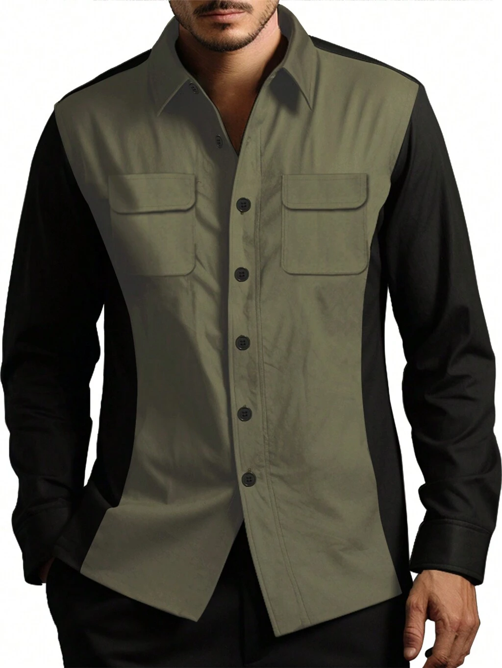 Loose Fit Men's Solid Color Shirt With Notched Collar