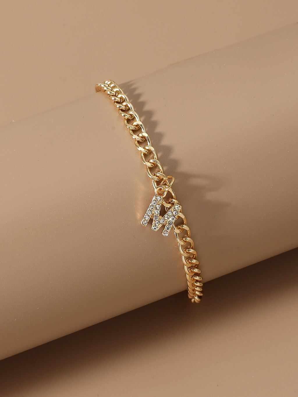 Rhinestone Decor Letter Charm Anklet
