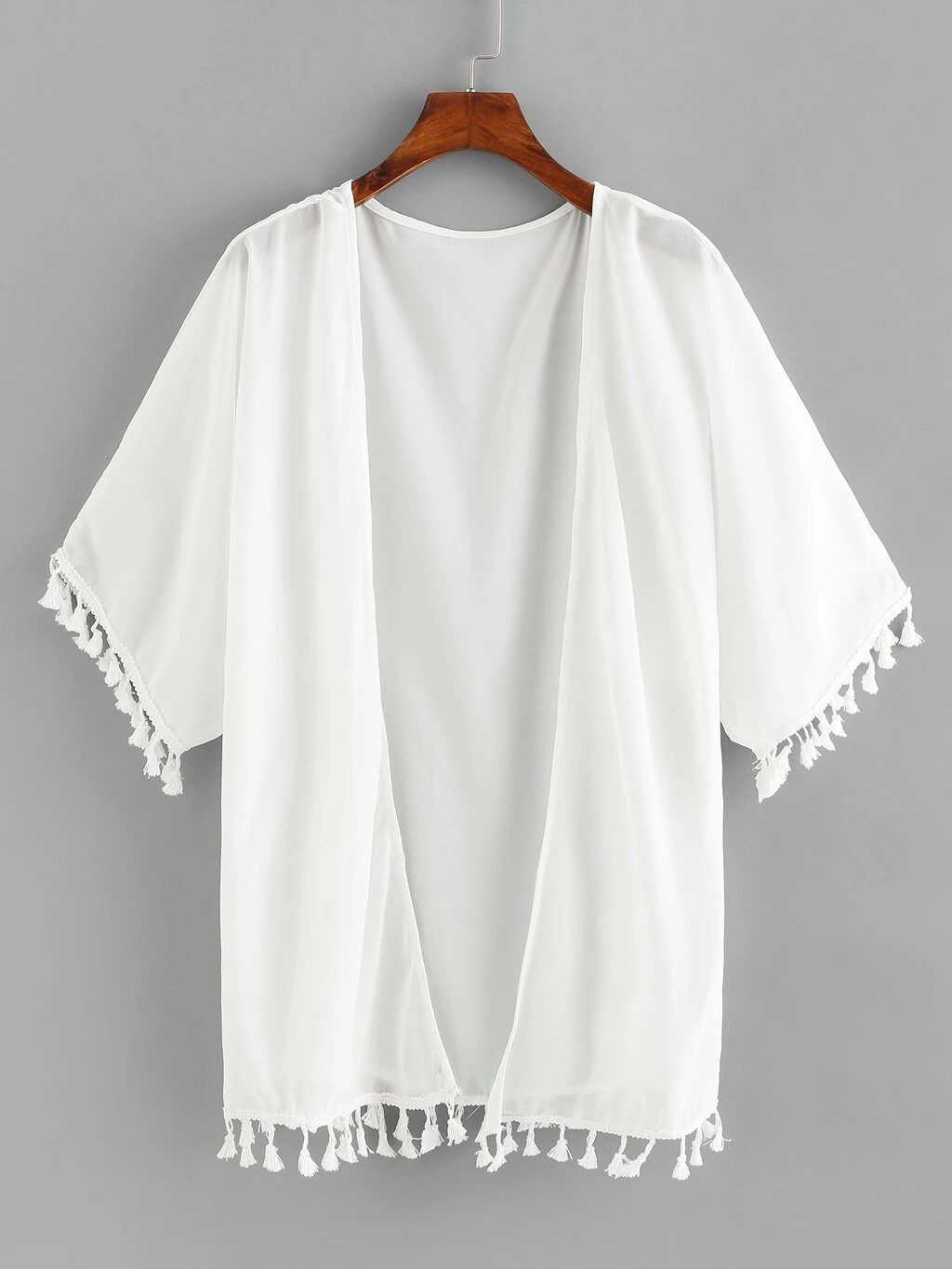 Circle Lace Trim Tie Front Kimono Without Bikini,Summer Beach