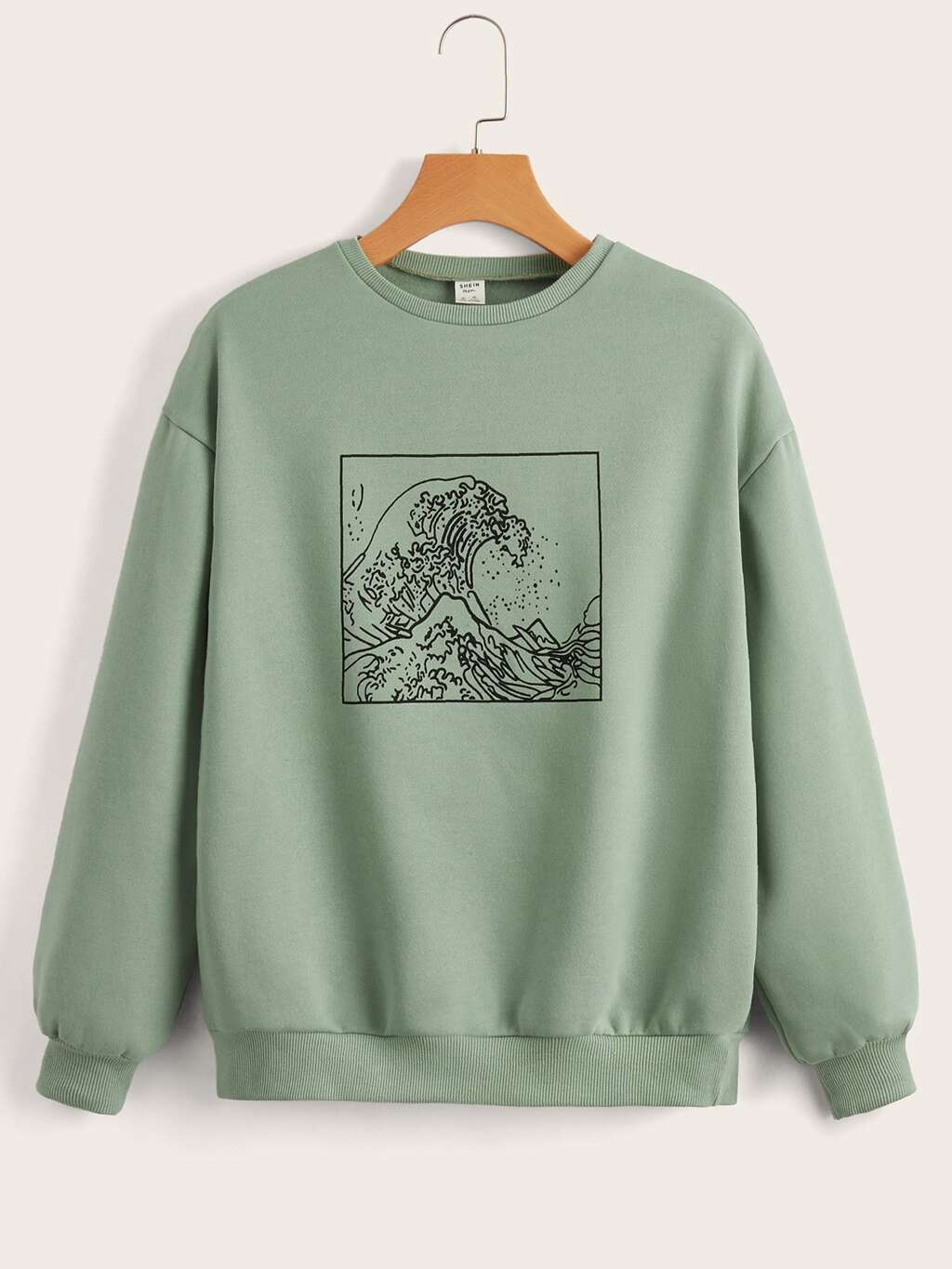 Teenage Boys' Casual Animal & Letter Printed Loose Fit Round Neck Sweatshirt