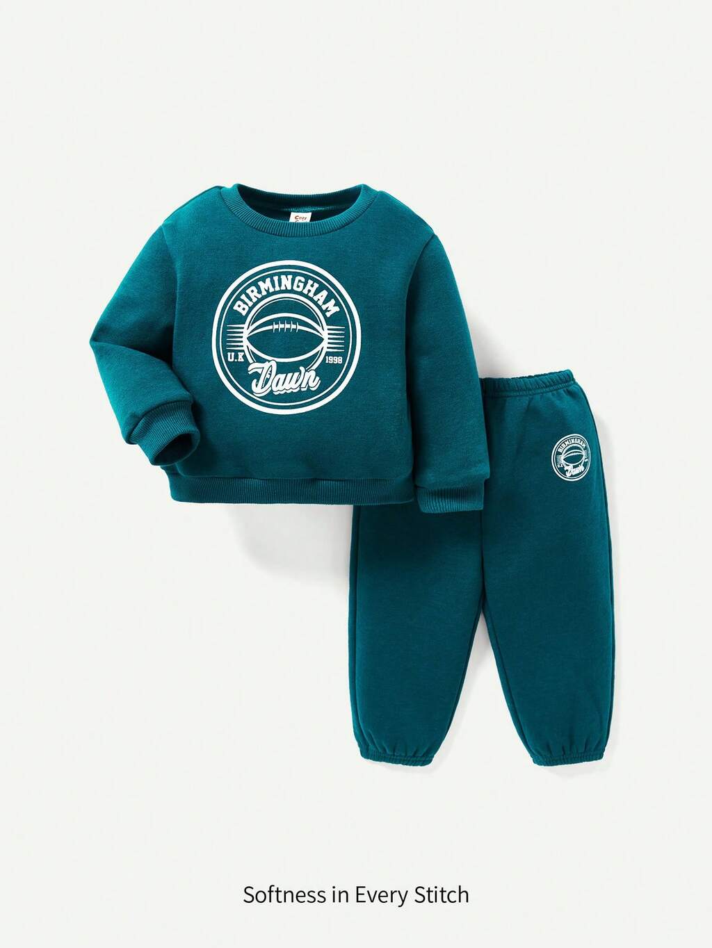 Baby Boy Casual Letter Print Round Neck Sweatshirt And Long Pants Sets