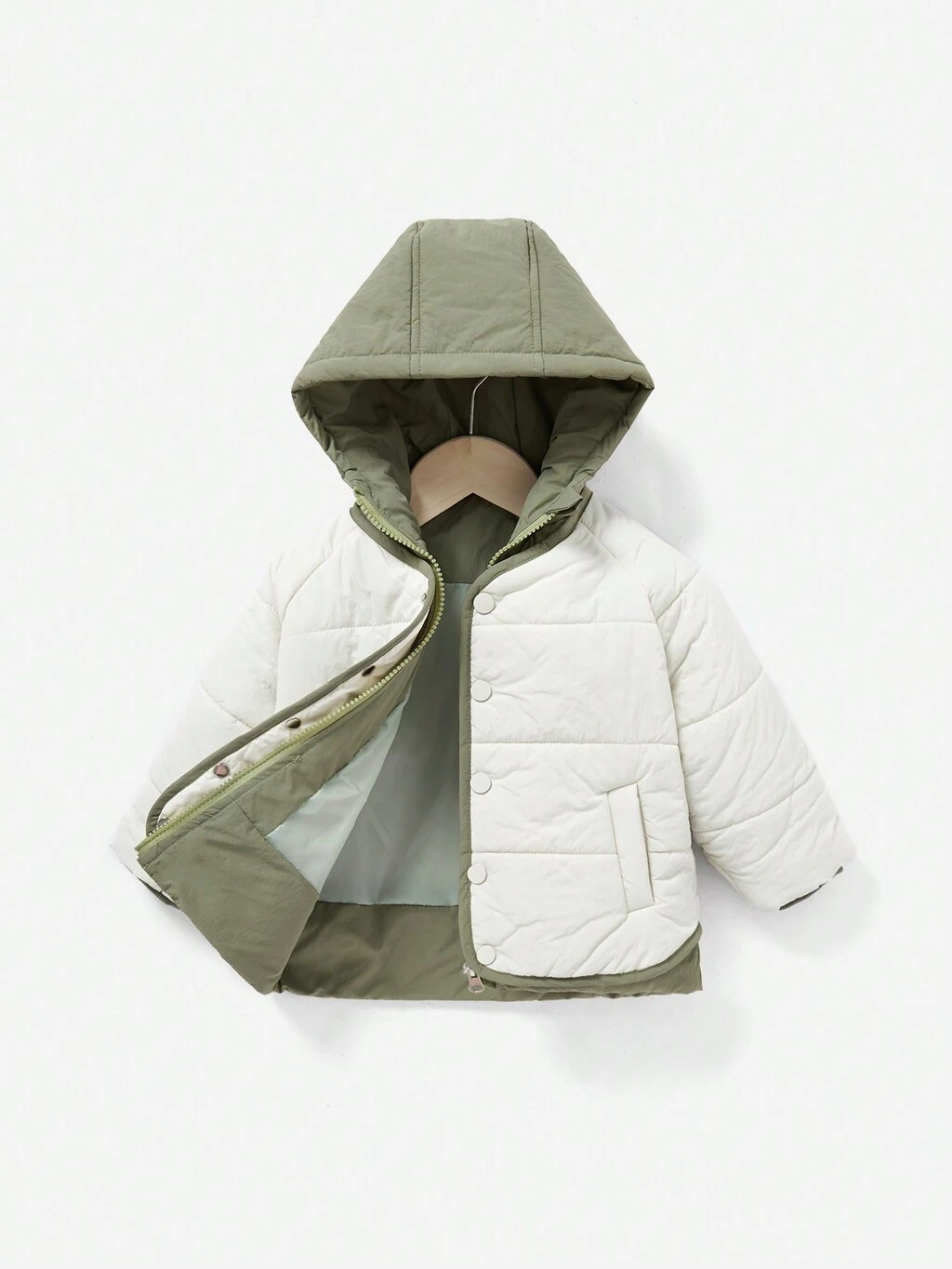 Baby Boy Contrast Binding Hooded Winter Jacket