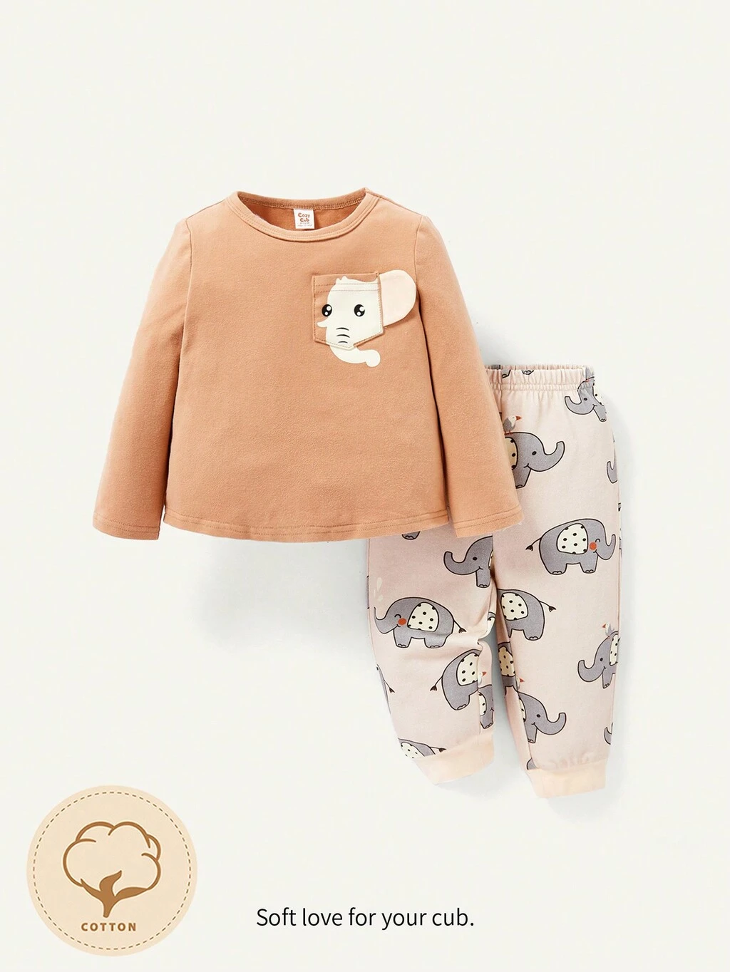 Baby Boy Elephant Patched Tee & Cartoon Graphic Sweatpants