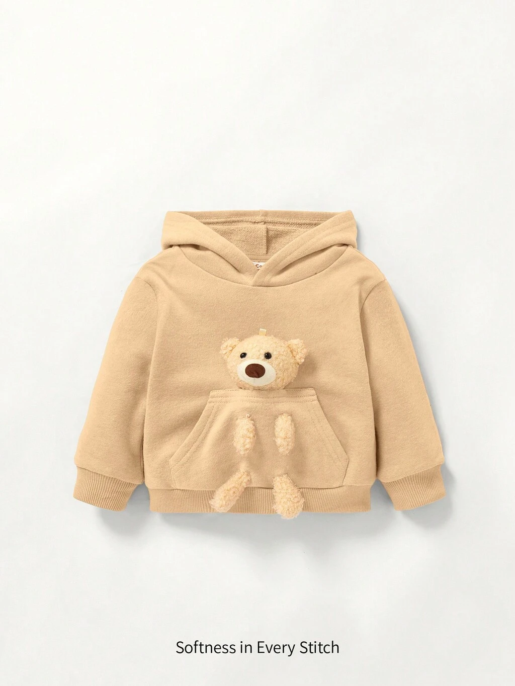 Baby Boy 3D Bear Decor Kangaroo Pocket Sweatshirt