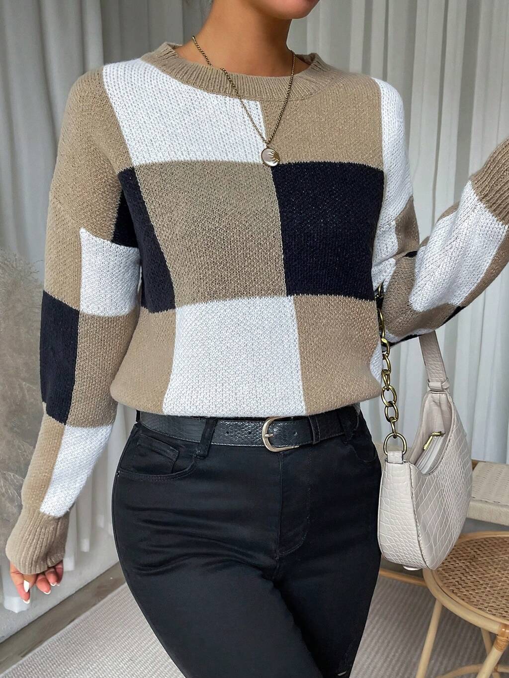 Colorblock Drop Shoulder Knit Pullover Fall Winter Sweater