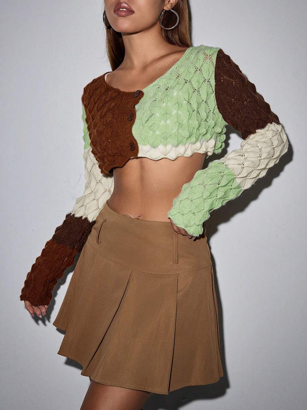 Striped Pattern Crop Cardigan & Knit Skirt Fall Cloth For Women