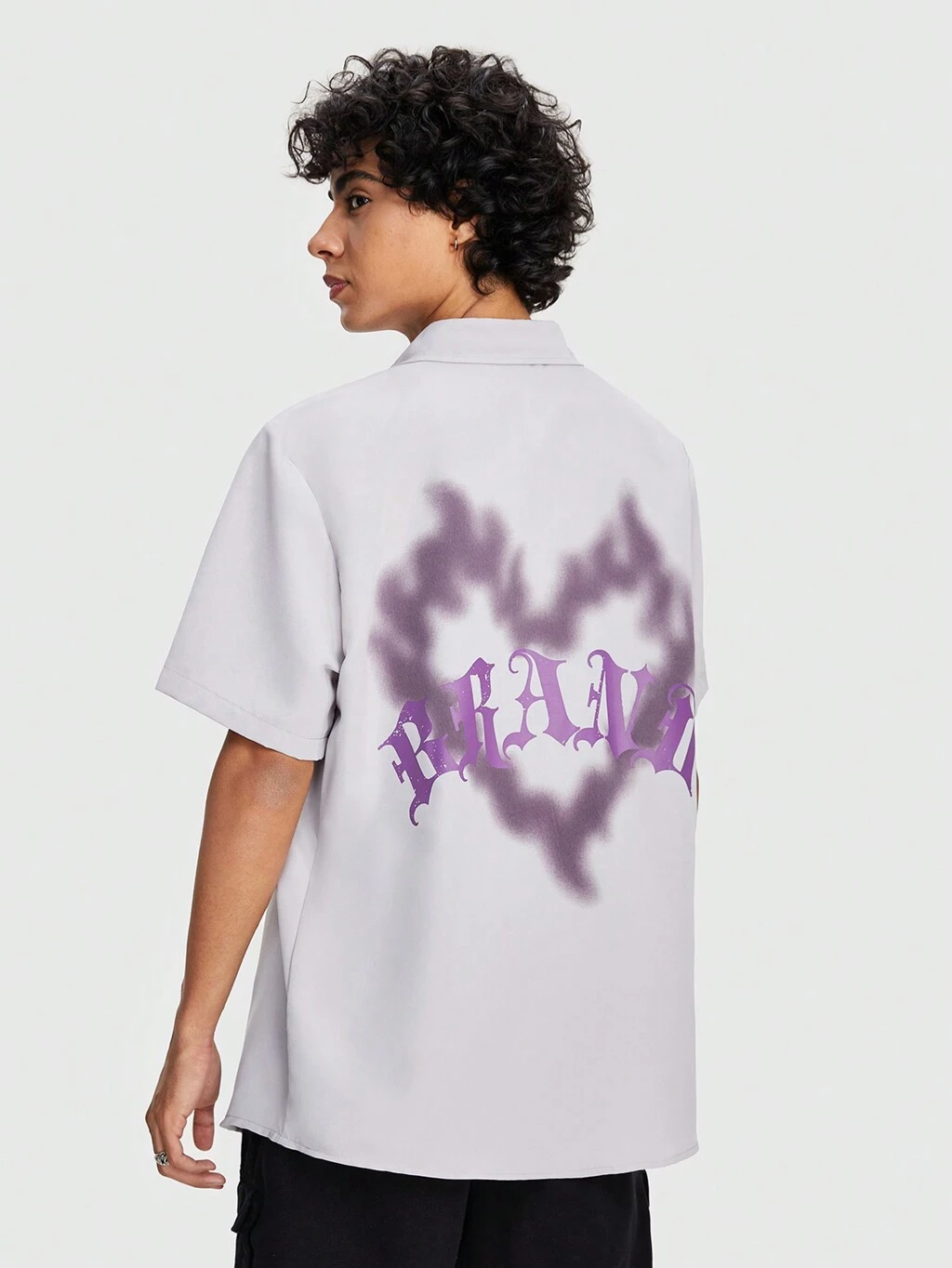Men Casual Short Sleeve Shirt With Heart And Letter Print For Summer