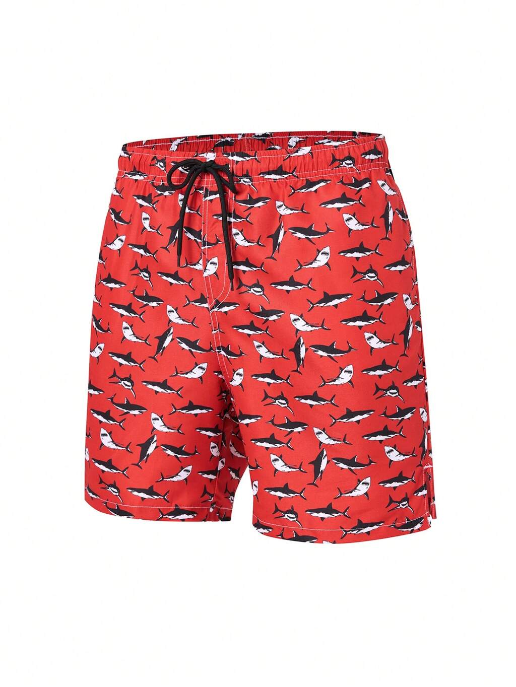 Men's Vacation Loose Fit Shark Printed Drawstring Waist Beach Shorts