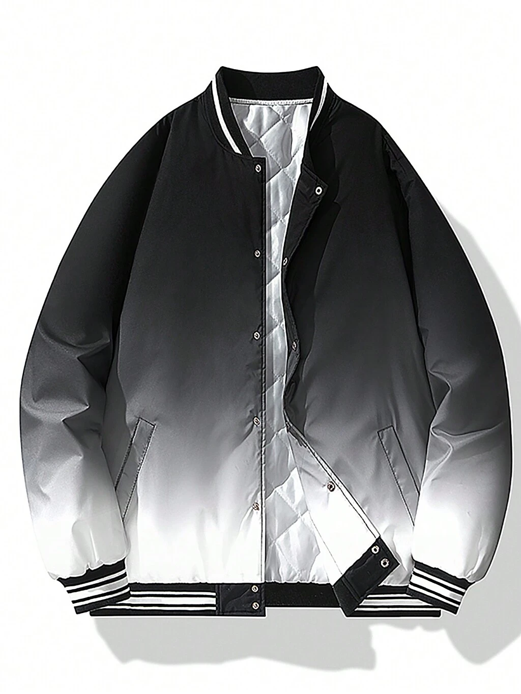 Ultra Loose Men's Ombre Striped Trim Baseball Collar Padded Coat Without T-Shirt
