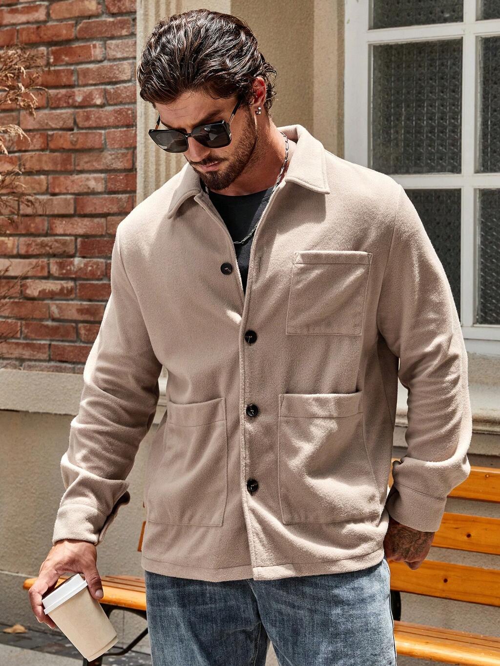1pc Men's Loose Fit Drop Shoulder Jacket With Dual Pockets, For Fall Winter