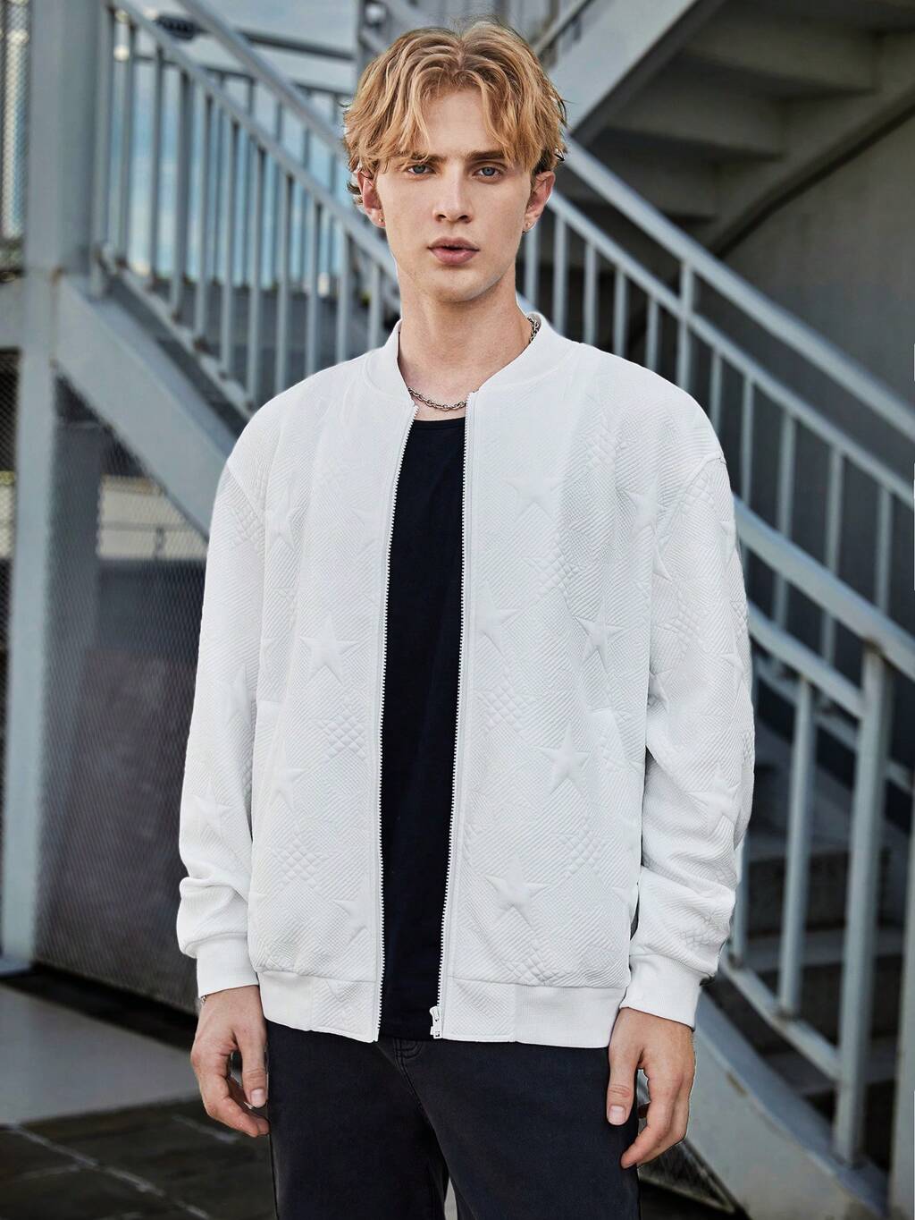 Men's Loose-Fit Zip Up Contrast Trim Jacket