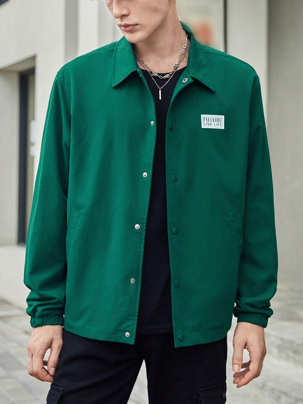 Men's Ultra Loose Jacket With Button Closure And Letter Patched Detail, For Fall Winter