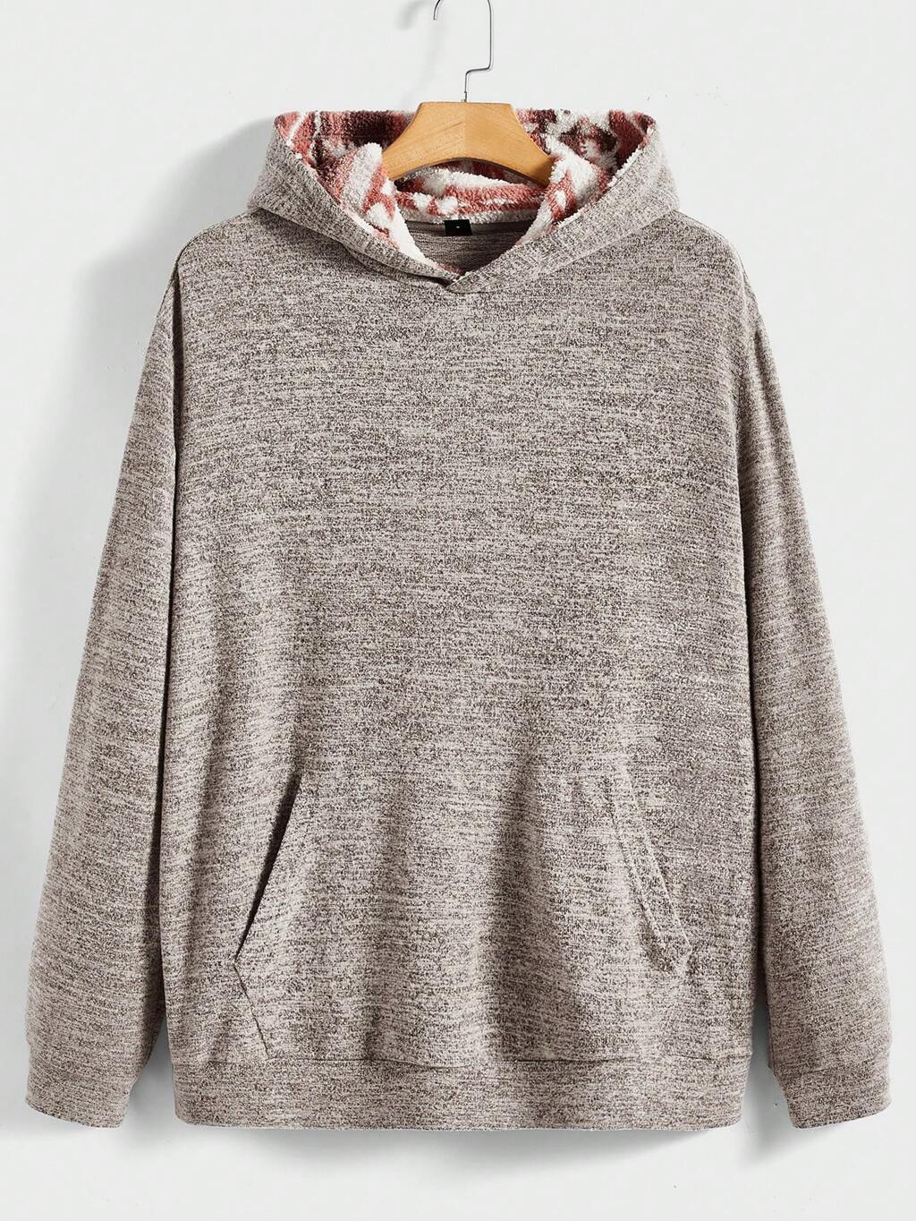 Men Marled Knit Kangaroo Pocket Drop Shoulder Hoodie