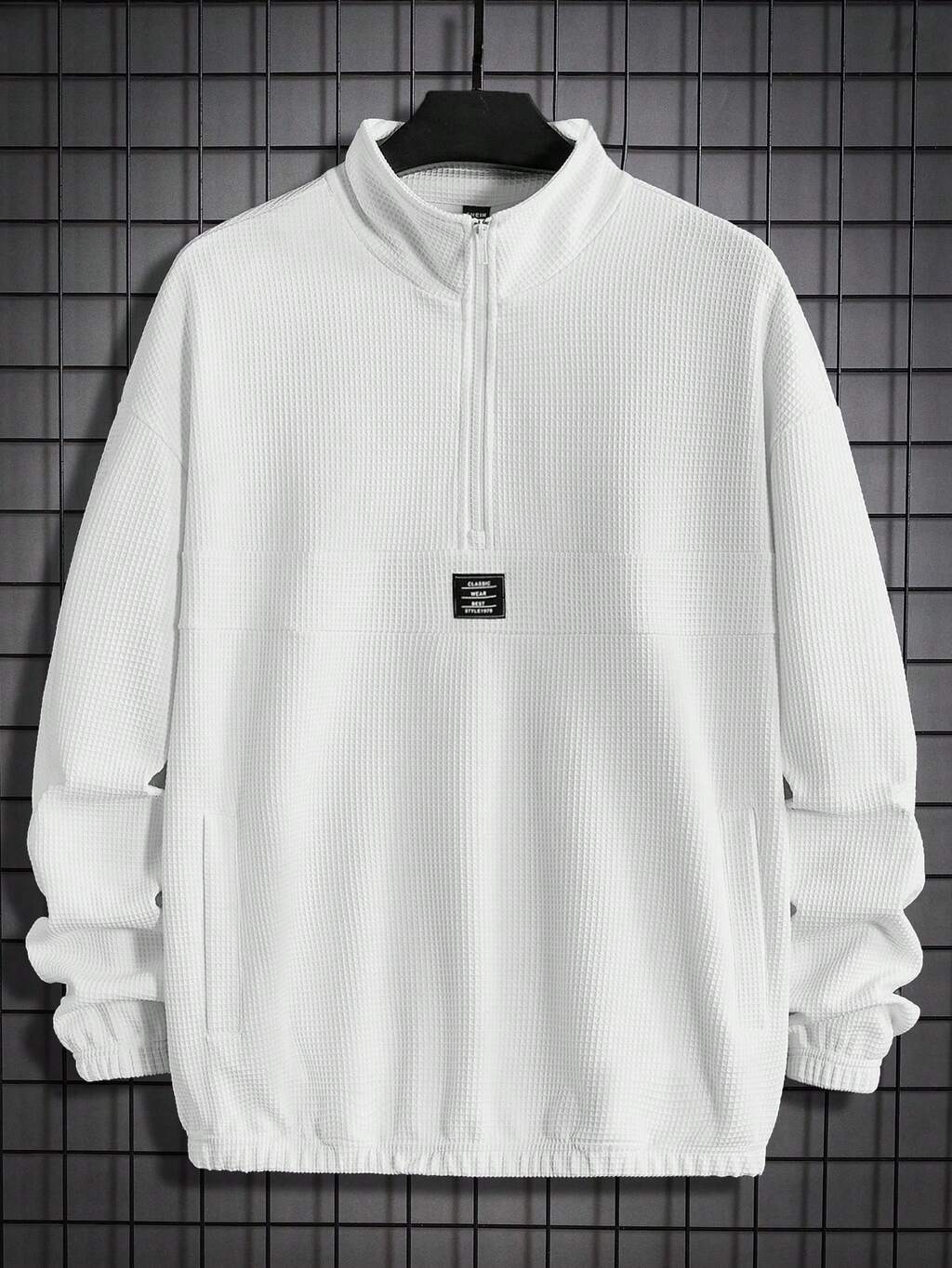 Men Loose Letter Patched Detail Half Zip Drop Shoulder Sweatshirt, For Fall Winter