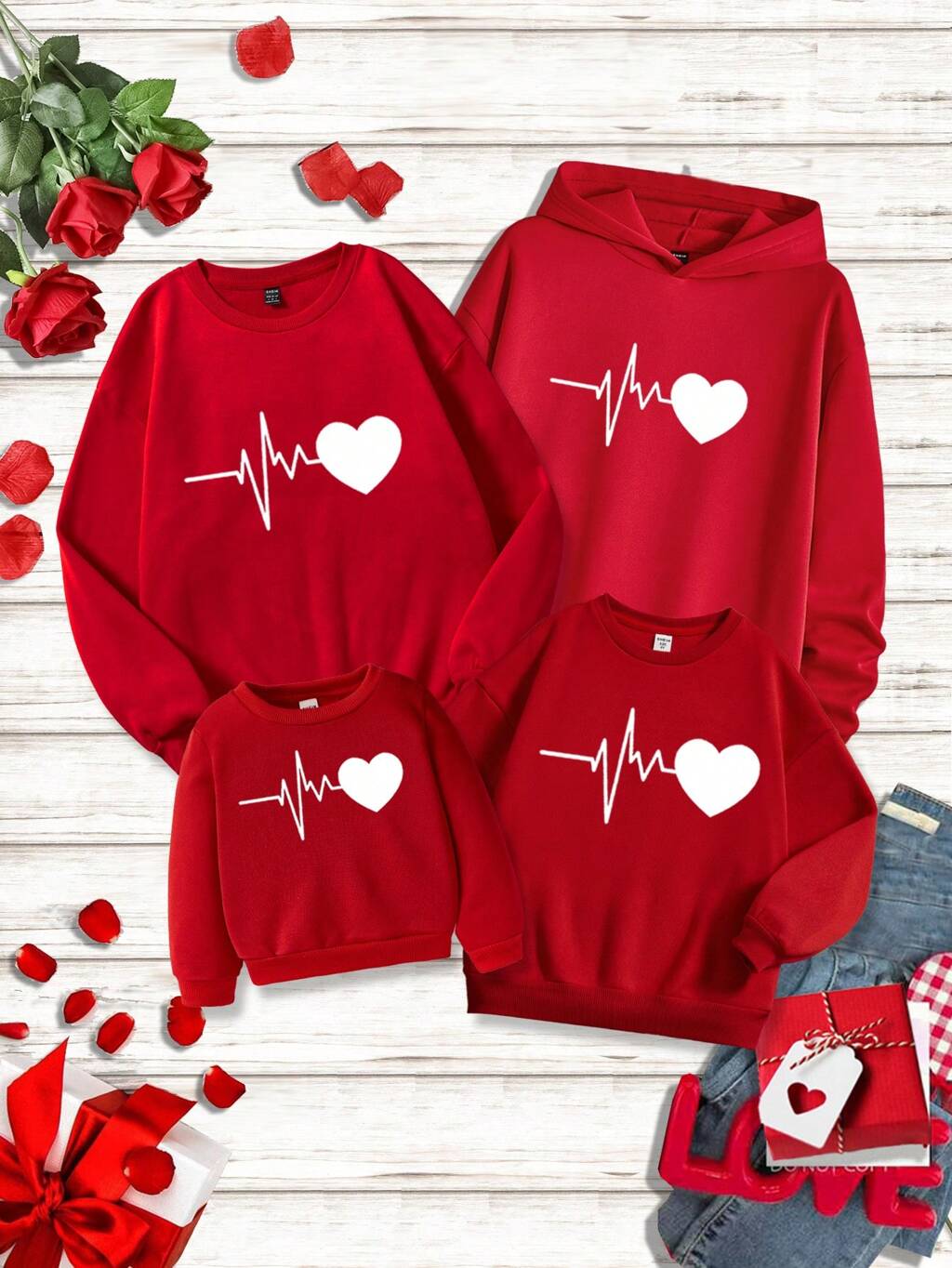 Men Oversized Heart Print Hoodie Sweatshirt, Fall