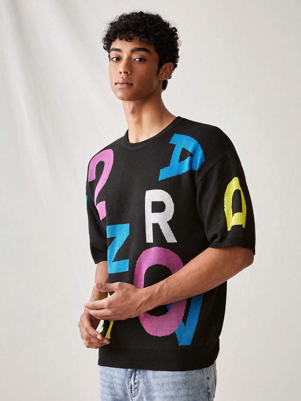 Men's Simple Knitted Sweater With Printed Design And Color-Blocking