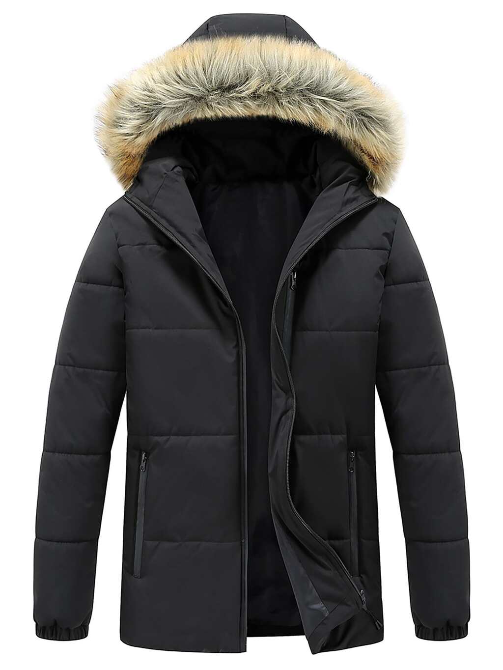 Men Fuzzy Trim Hooded Zipper Outdoor Windbreaker Padded Coat, Fall/Winter