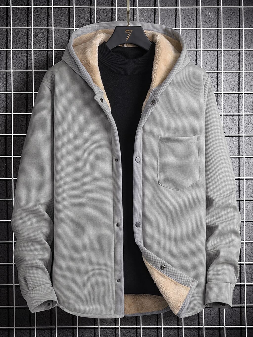 Loose Fit Men's Teddy Jacket Without Hoodie, Featuring Flap Detail And Drop Shoulder Design
