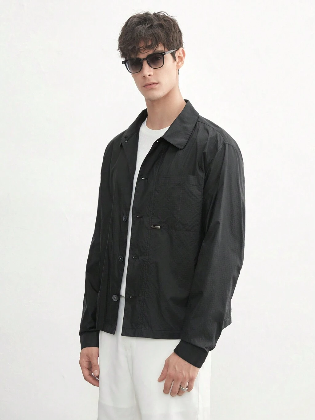 UPF Men's Woven Nylon Windbreaker Fabric Loose Shoulder Check Jacket Shirt, UV Protection, Suitable For Spring/Summer, For Fall Winter