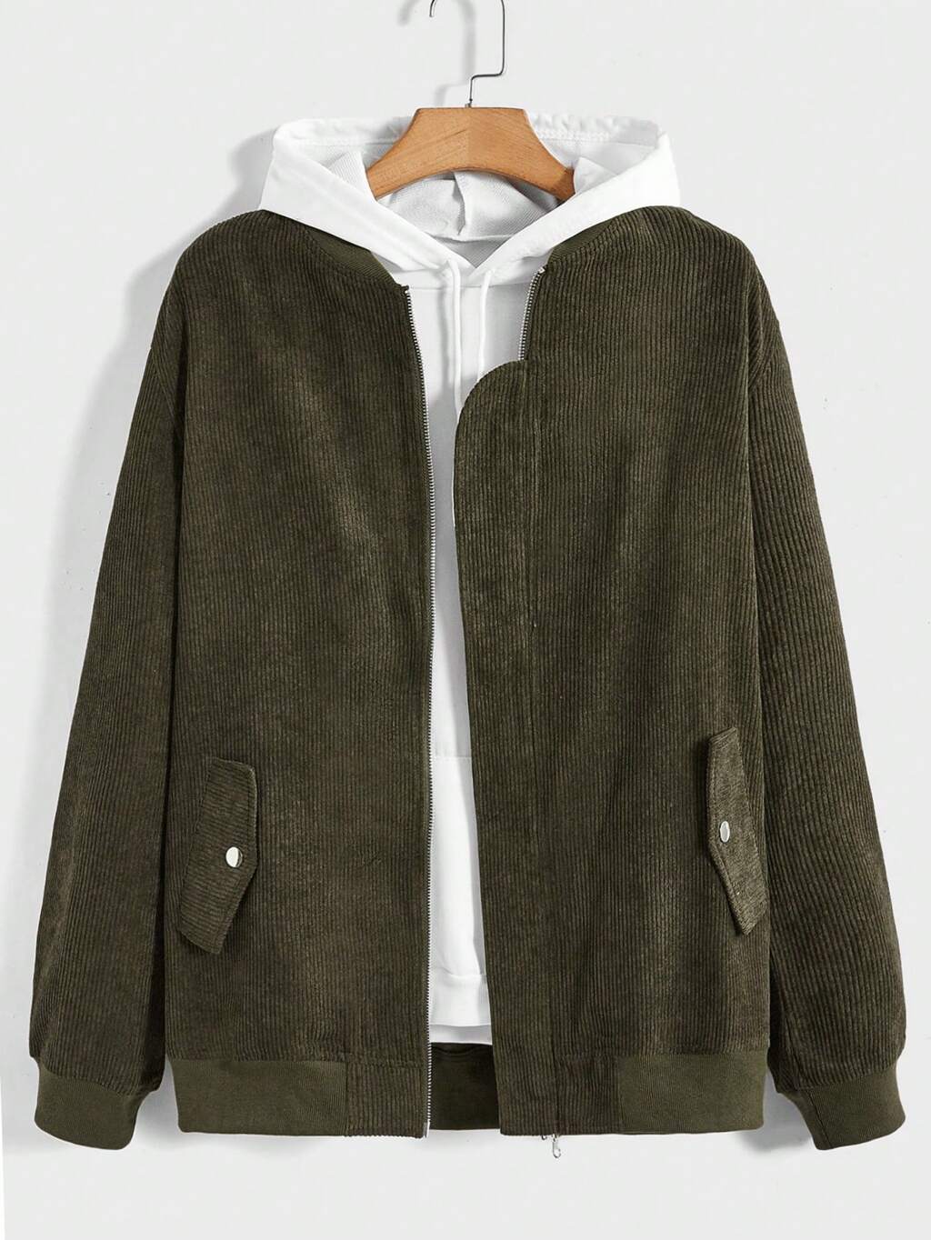 Men Flap Detail Corduroy Bomber Jacket Without Hoodie
