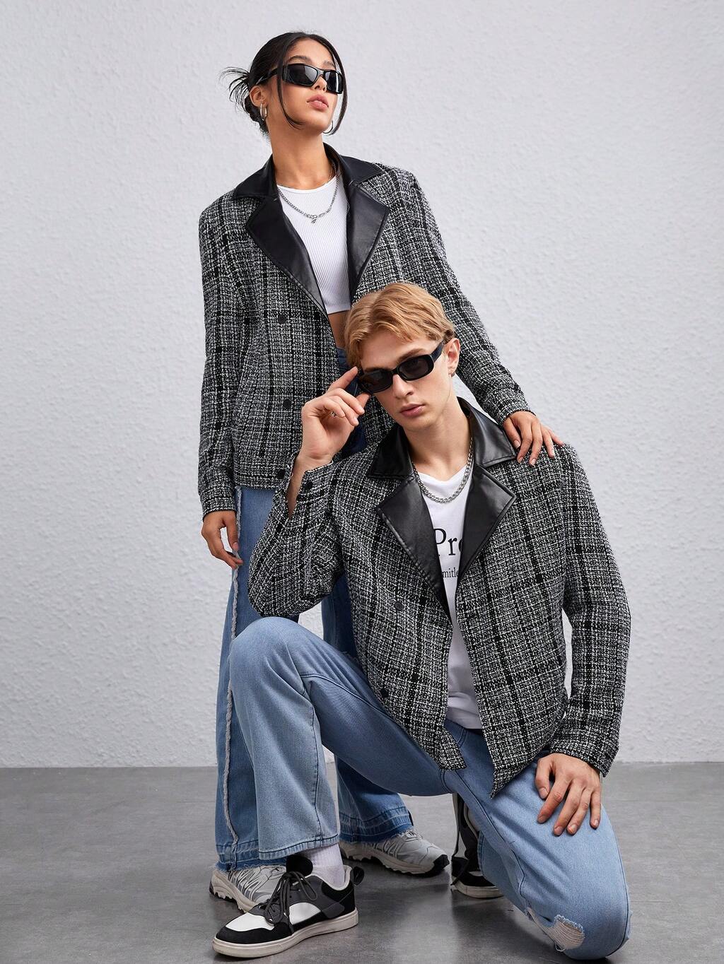Loose Fit Men's Plaid Double-Breasted Overcoat