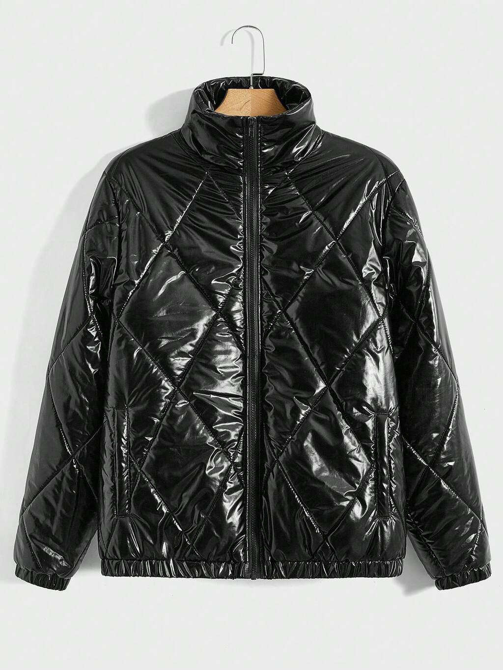 1pc Loose Fit Men's Casual Zip-Up Long Sleeve Puffer Jacket