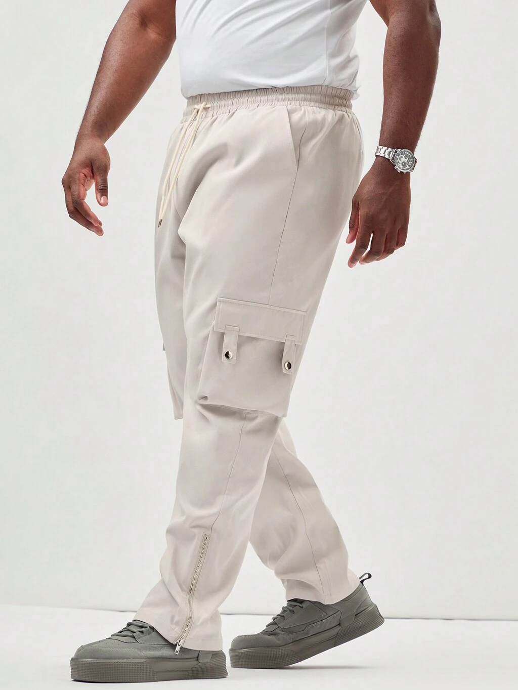 Men'S Plus Size Cargo Pants With Zipper Decorated & Elastic Cuff