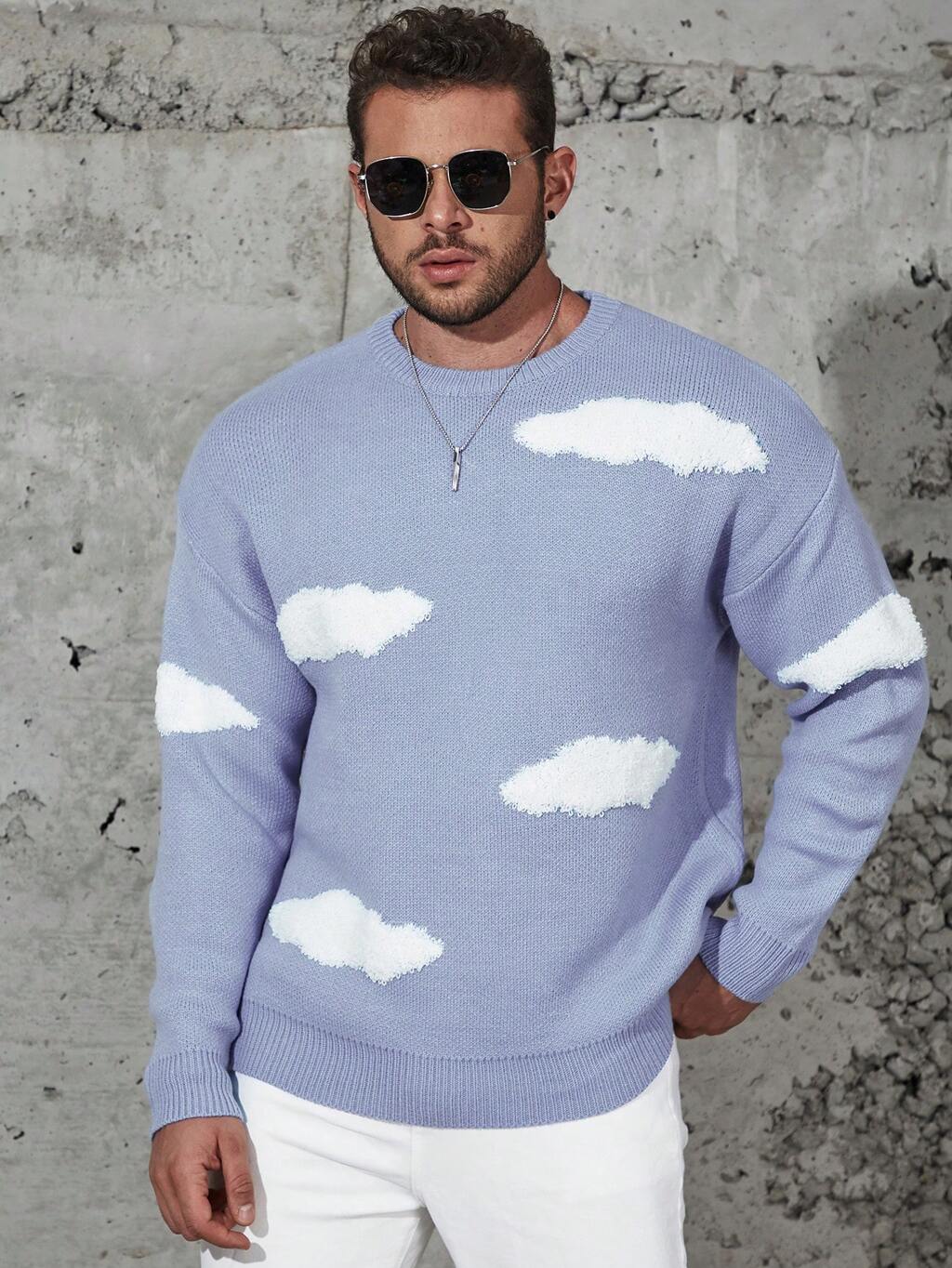 Men's Plus Size Cloud Pattern Drop Shoulder Sweater
