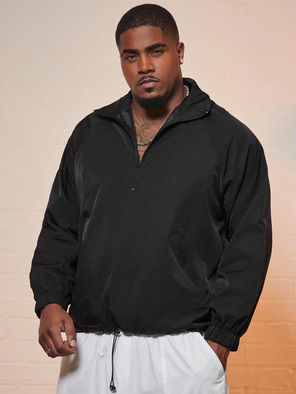 Men Plus Half Zip Raglan Sleeve Drawstring Hem Outdoor Windbreaker Jacket