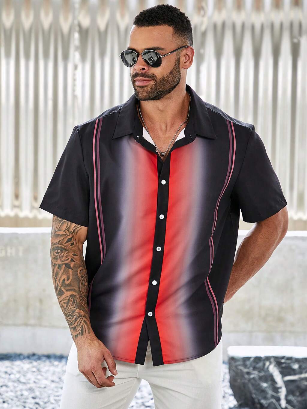Men's Plus Size Gradient Casual Short Sleeve Shirt For Summer