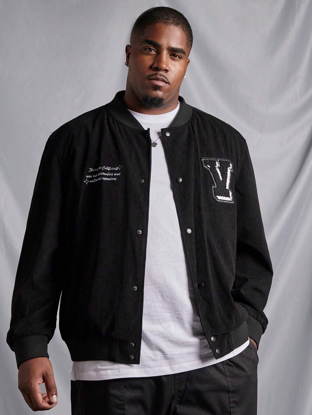 Men'S Plus Size Black Baseball Collar Jacket