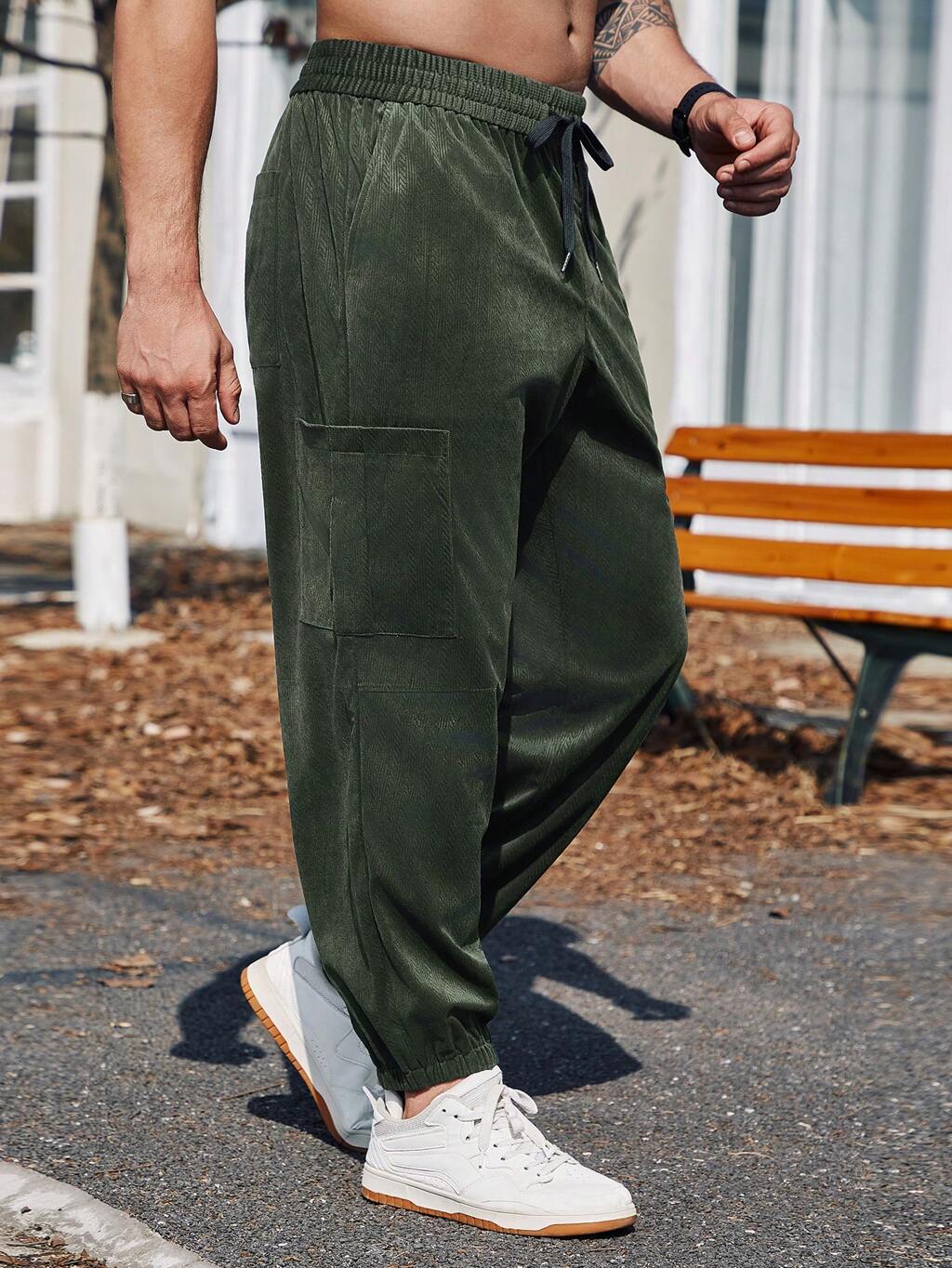 Men's Plus Size Loose Jogger Pants With Drawstring Waist , Corduroy