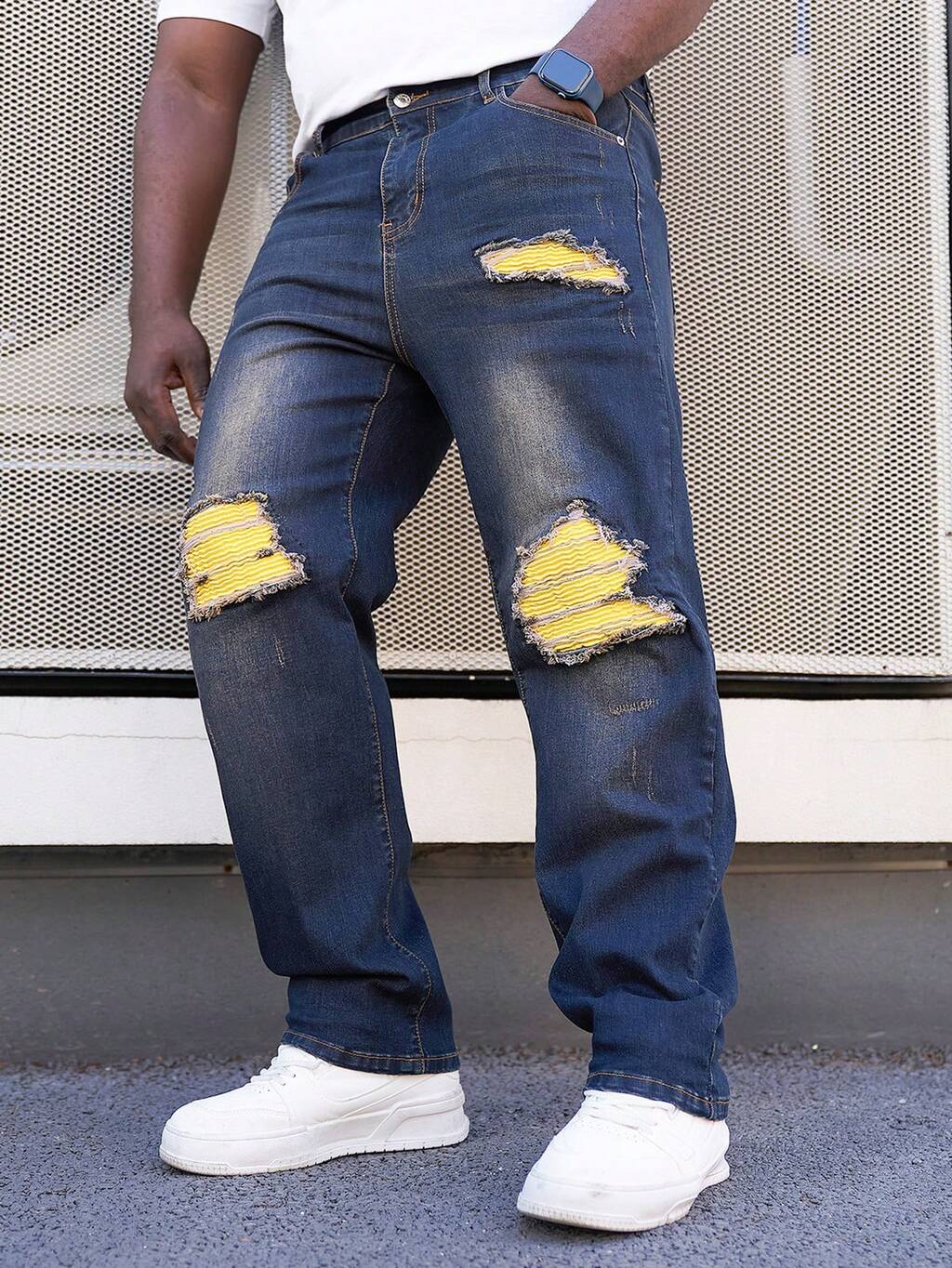 Men Plus Splash Ink Print Ripped Straight Leg Jeans