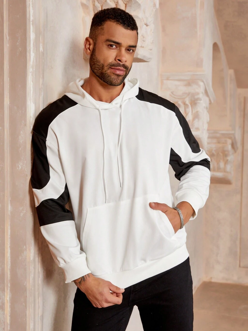 Men's Plus Size Fashionable Color Block Sweatshirt With Hood