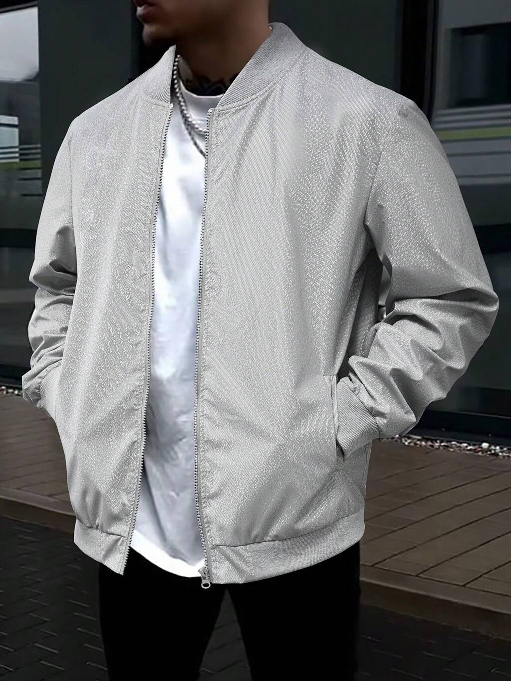 Oversized Men's Zip-Up Long Sleeve Casual Bomber Jacket, For Fall Winter