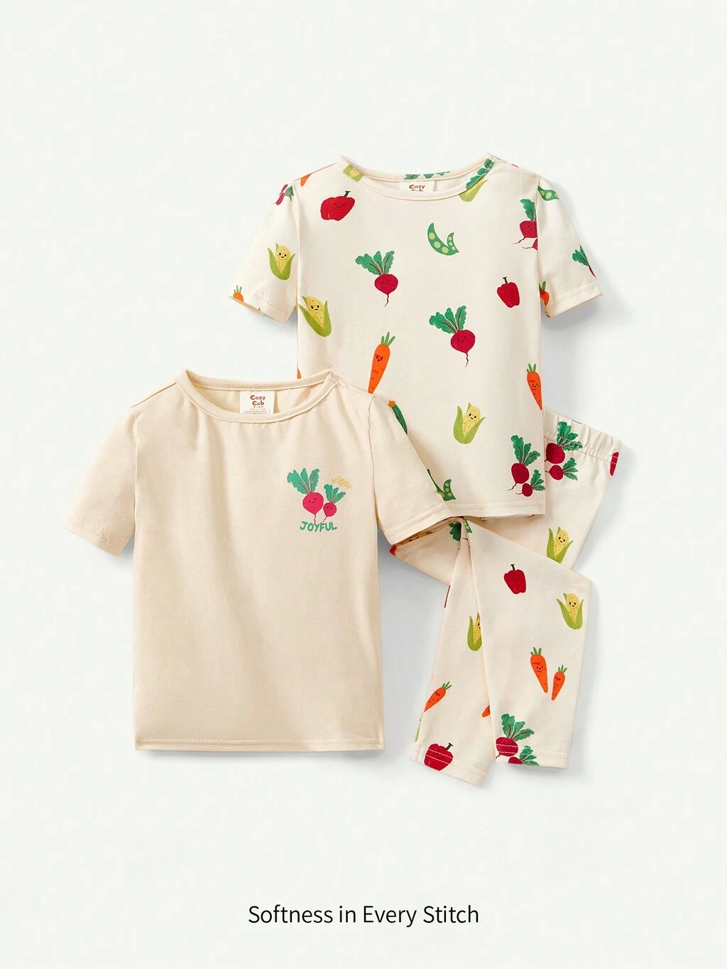 Baby Boy Casual Round Neck Short Sleeve T-Shirt Set With Letter Print, 2pcs
