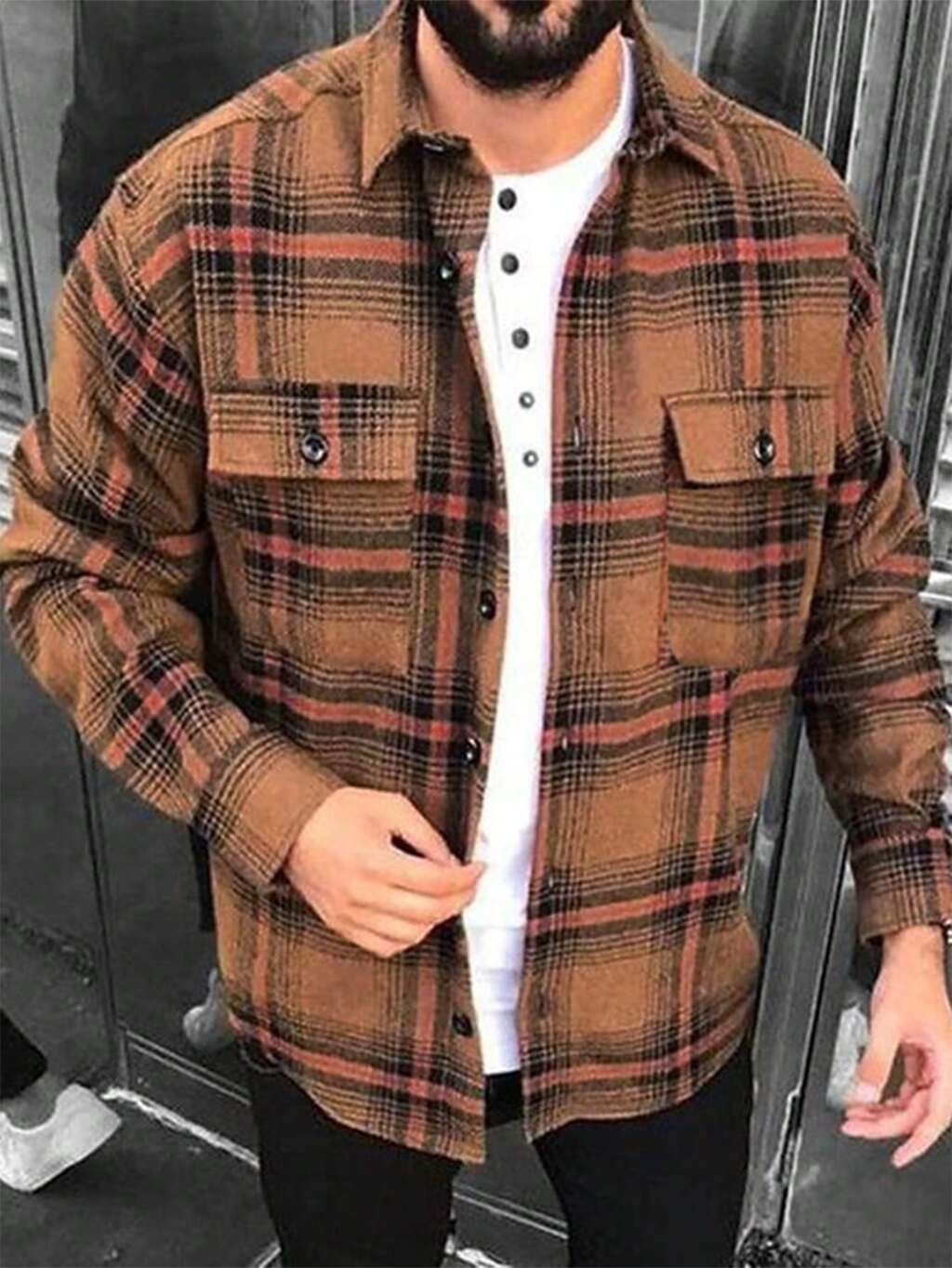 Loose Fit Men's Plaid Checkered Flap Pocket Shacket