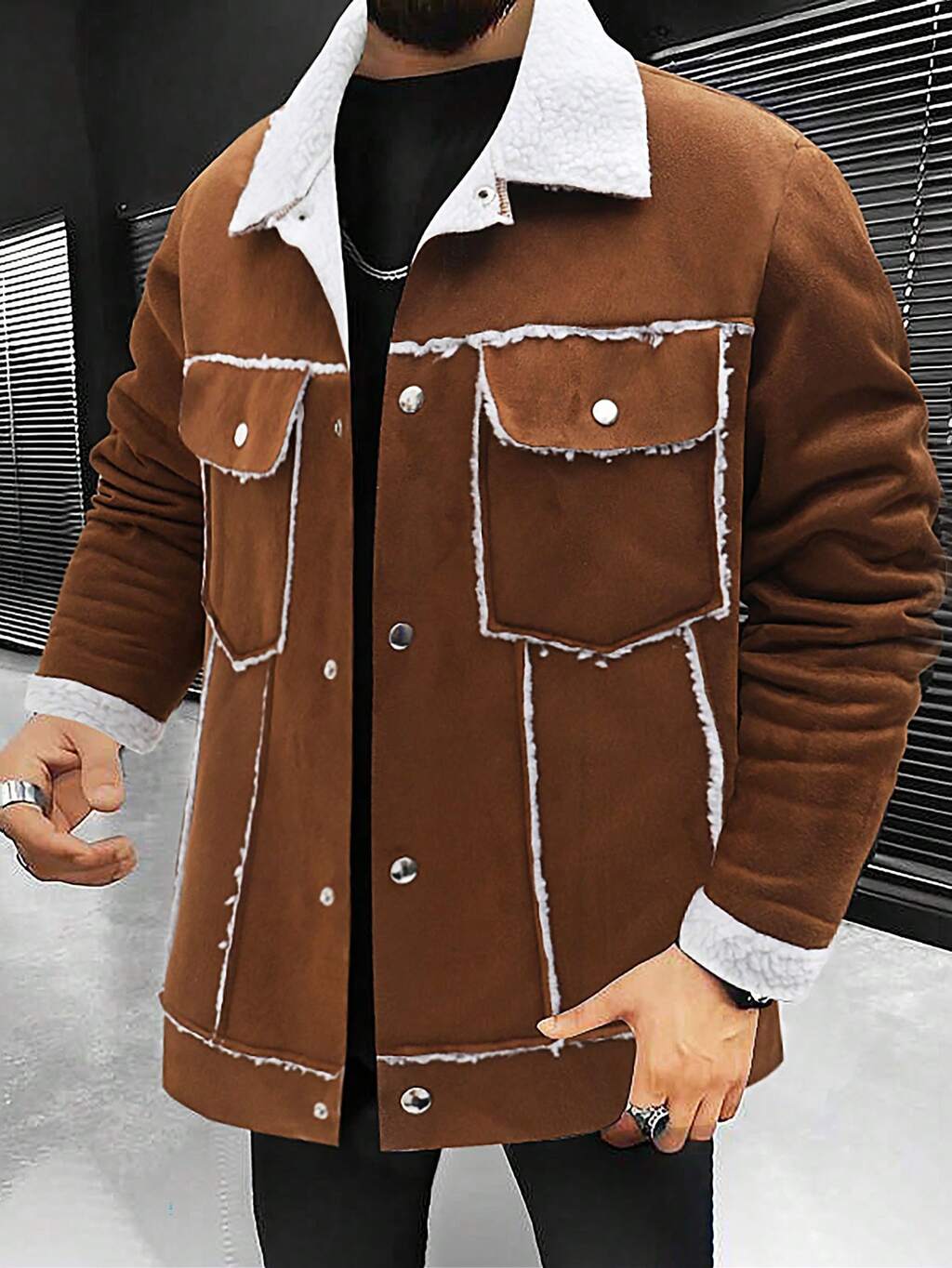 Loose Fit Men's Borg Collar Jacket With Flap Pockets