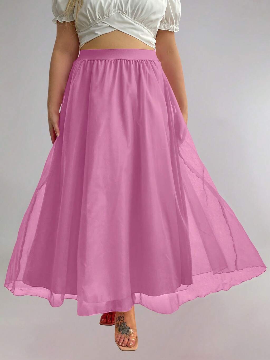 Plus Size Women's Solid Color Ruffle Hem Skirt