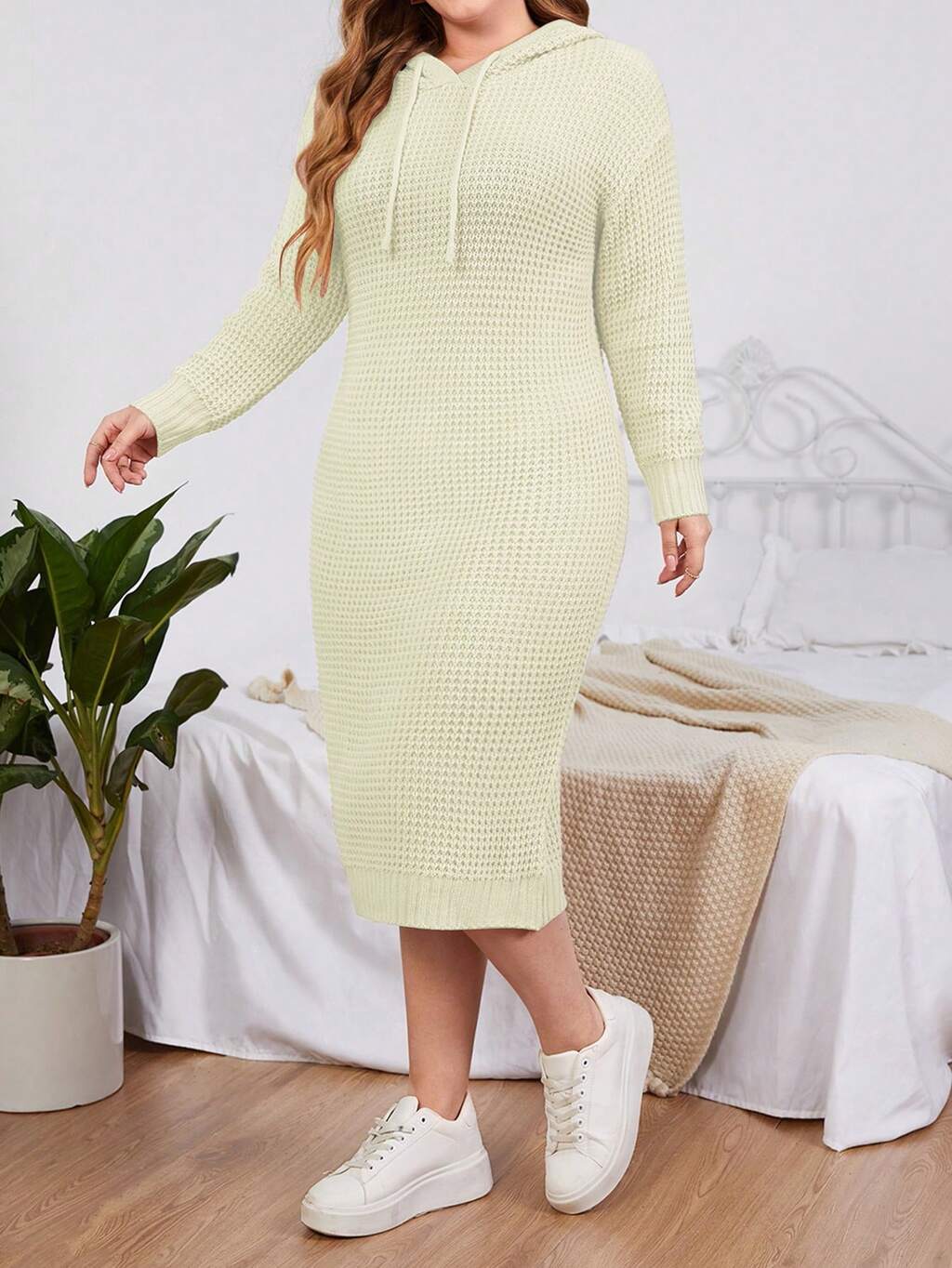 Plus Size Solid Color Hooded Sweater Dress