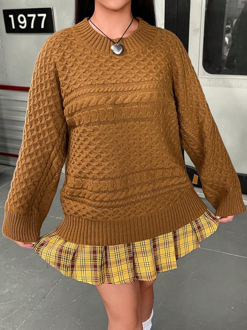 Plus Cable Knit Drop Shoulder Sweater Knit Pullover Fall Winter Sweater
