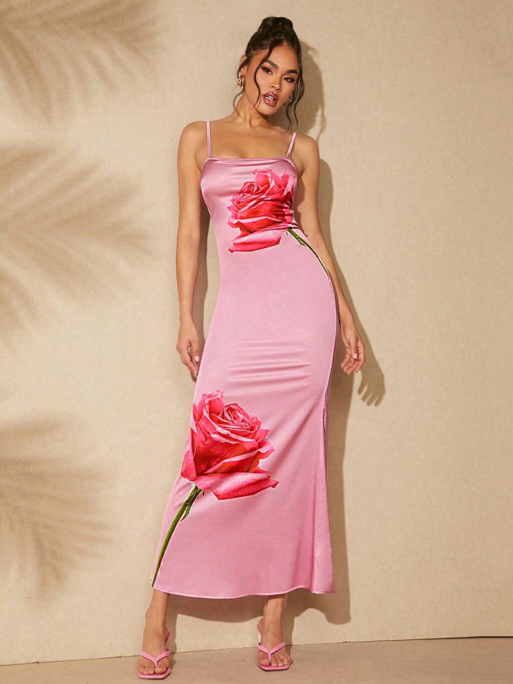 Women's Fashionable Future Style Sheer Mesh Dress With Allover Print Digit Full Of Rose Elements