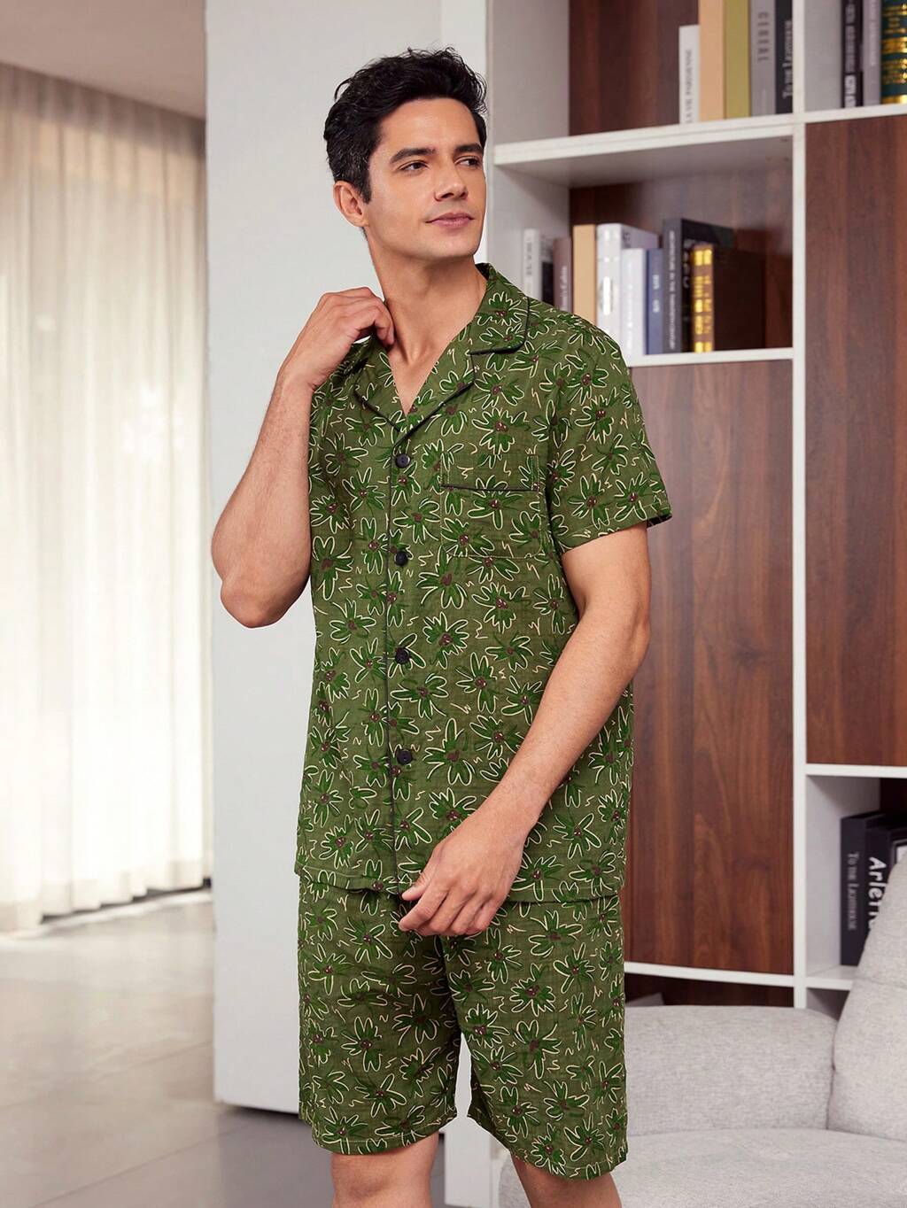 Men's Short Sleeve Printed Top And Shorts Homewear Set